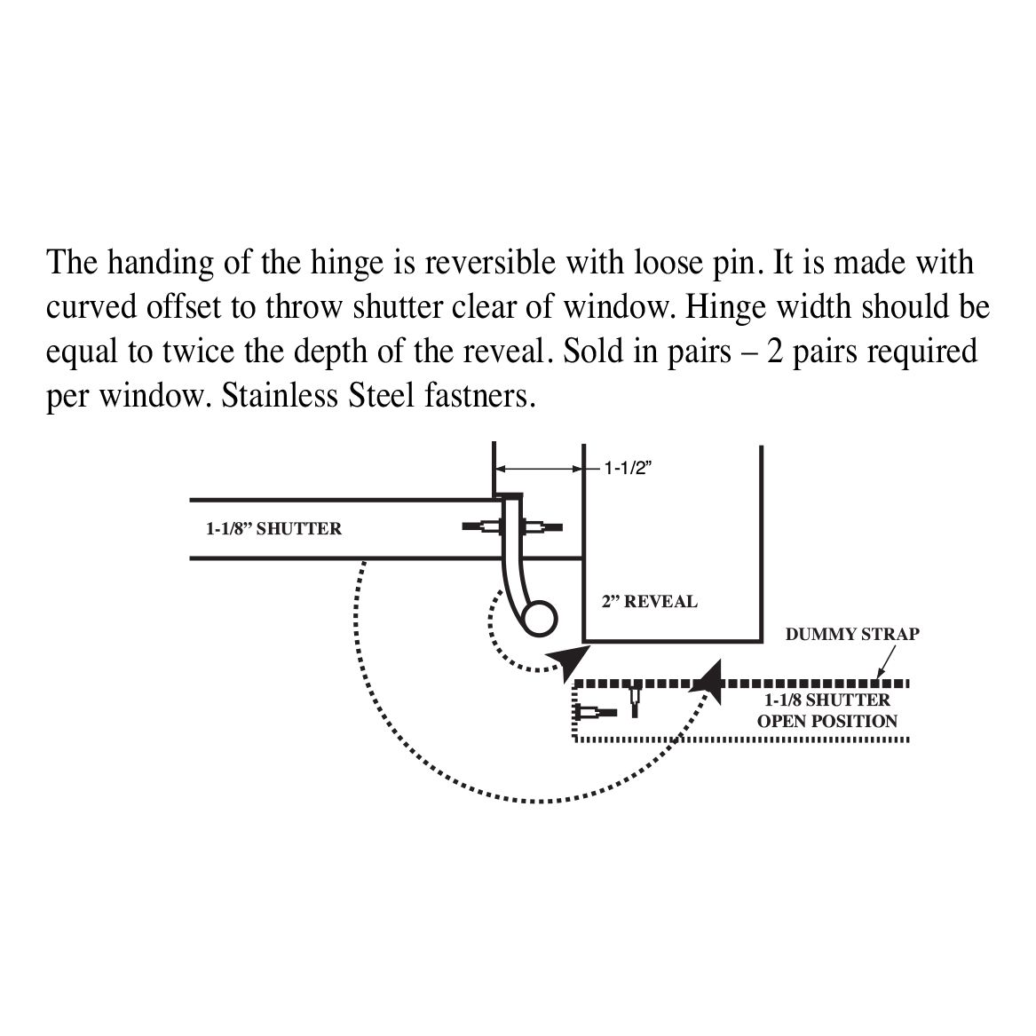 Handing of the hinge is reversible with loose pin.